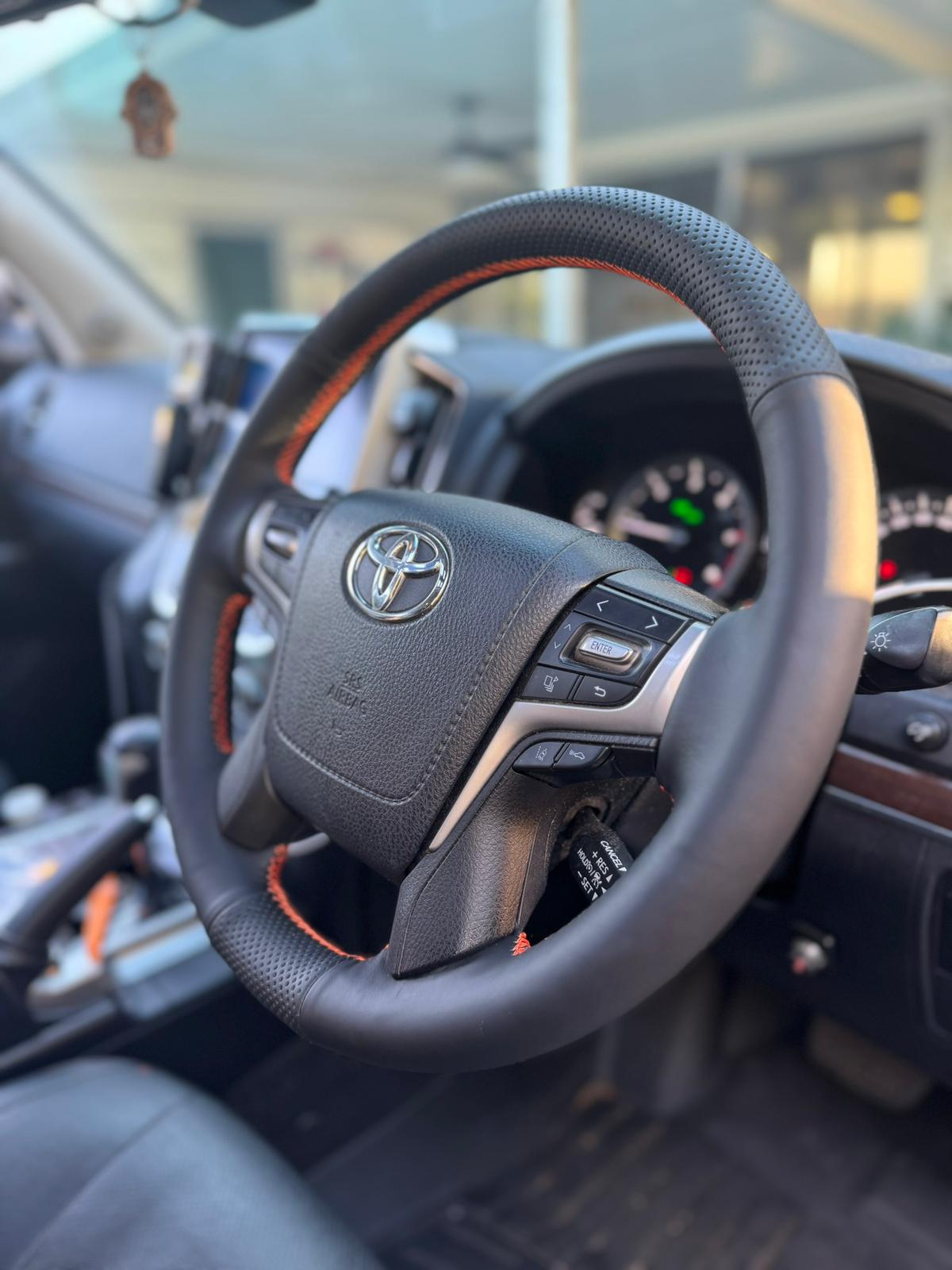 Enhance your driving comfort and interior luxury with the Toyota LandCruiser (Sahara) 200 Series 2016–2020 Steering Wheel Wrap/Cover, expertly crafted from genuine first‑layer cowhide leather. Designed to fit the LandCruiser’s steering wheel perfectly, this premium leather cover delivers unmatched quality, durability, and refined style for one of the world’s most iconic SUVs.
