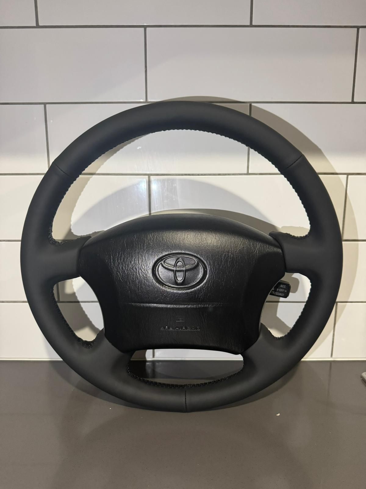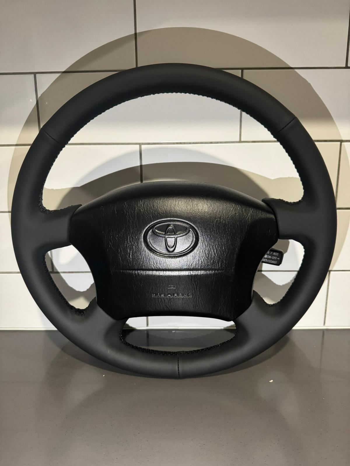 Toyota Prado LandCruiser, Hilux , 3 spoke, 95 series Genuine leather cover ( first layer cowhide leather )